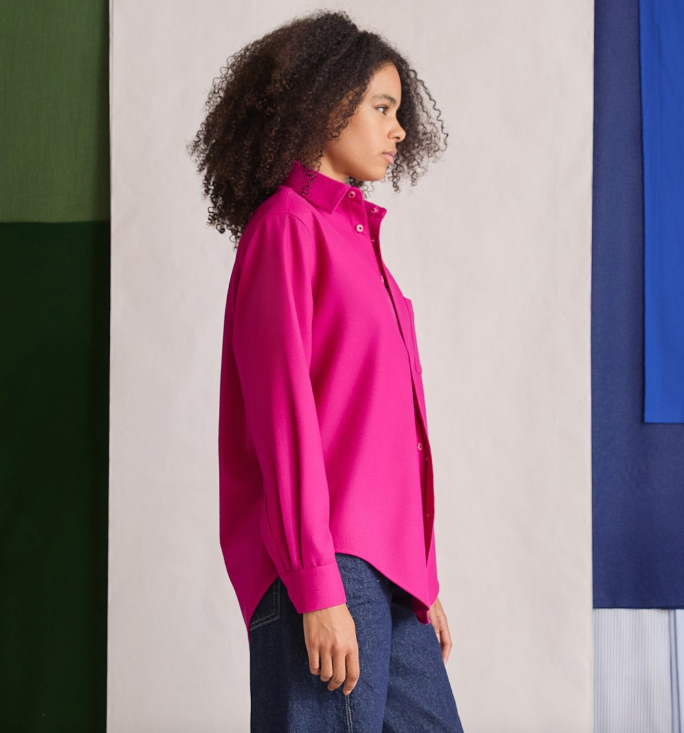 Crafted in a woman-founded, family-operated cut-and-sew factory in Queens, this piece is made from 100% merino wool and finished with enamel-painted metal snaps. Designed with an uninhibited yet structured feel, it balances strength and durability with breathability and elegance- stands out in a vibrant, eye-catching hue.