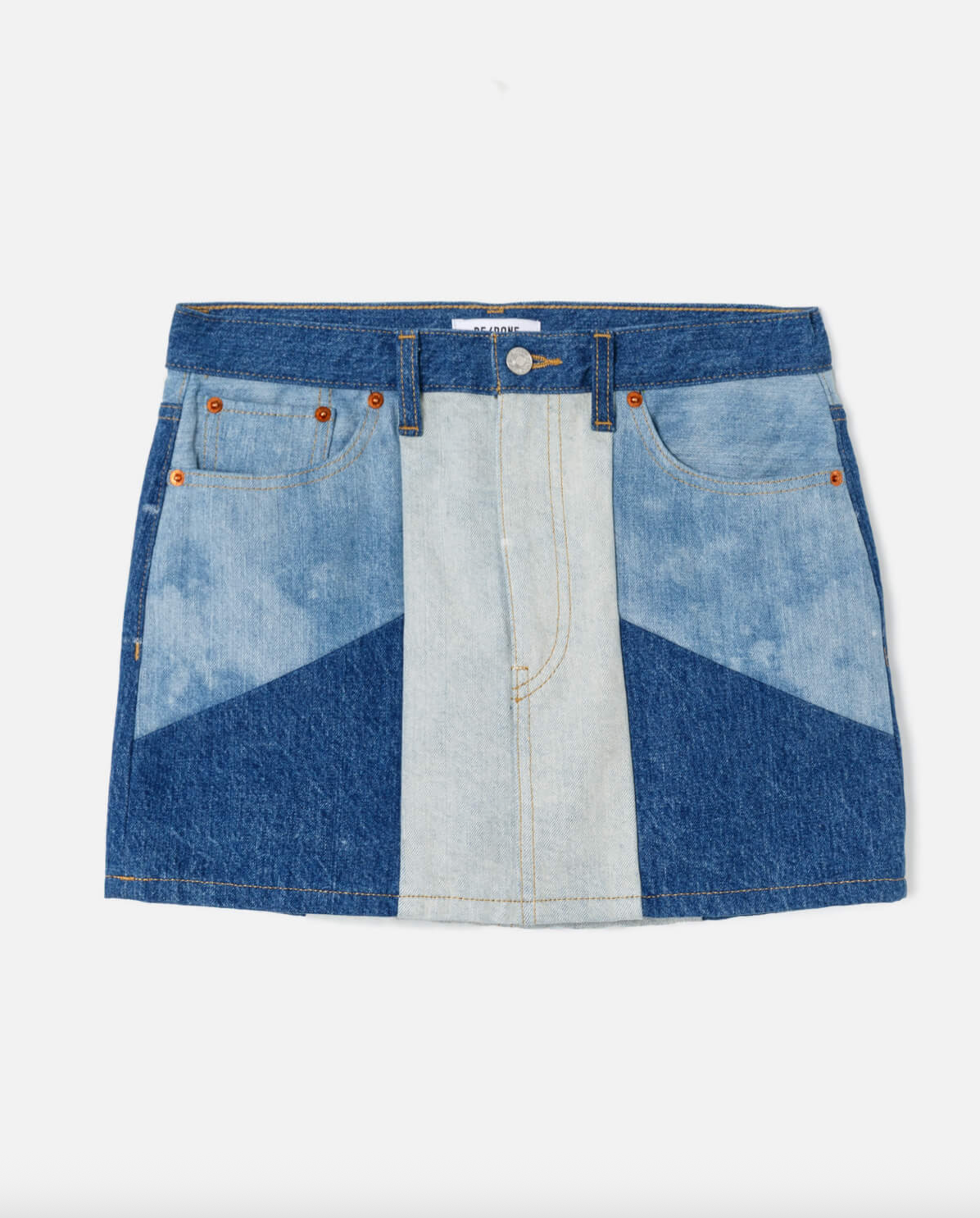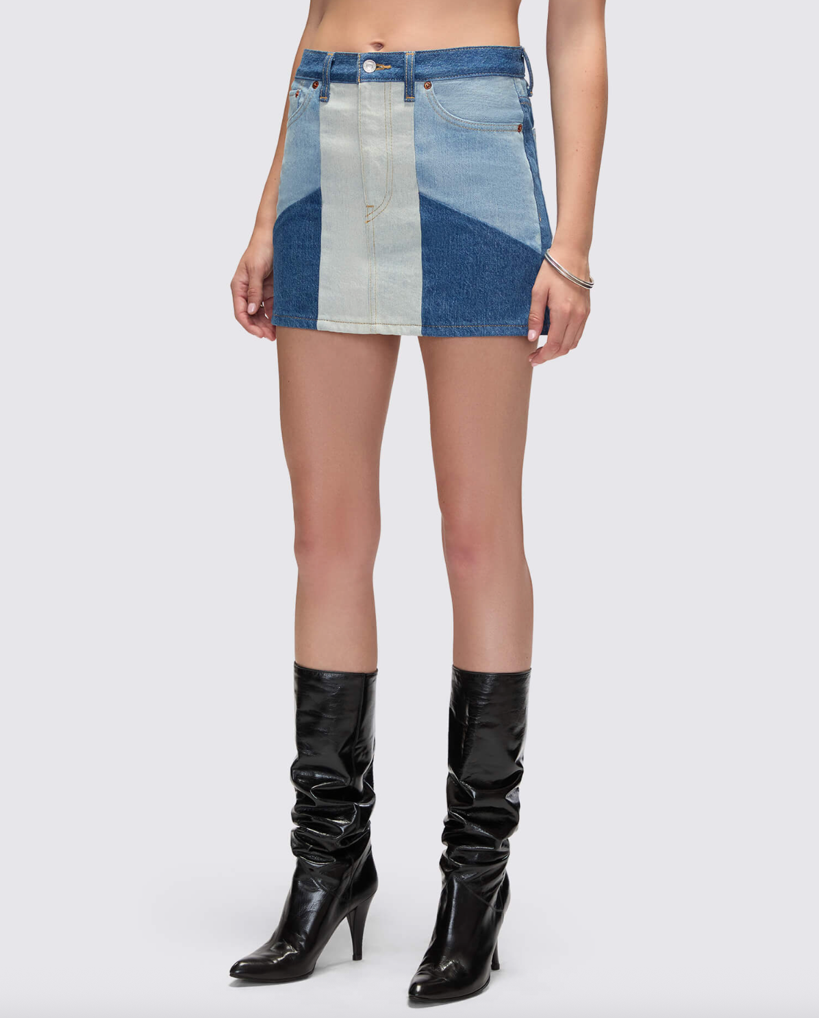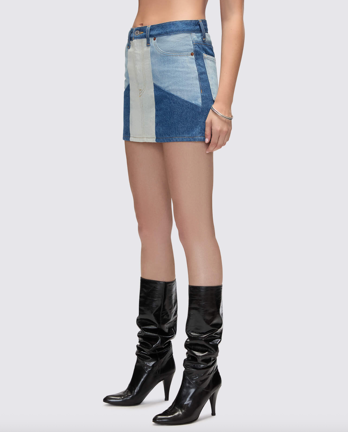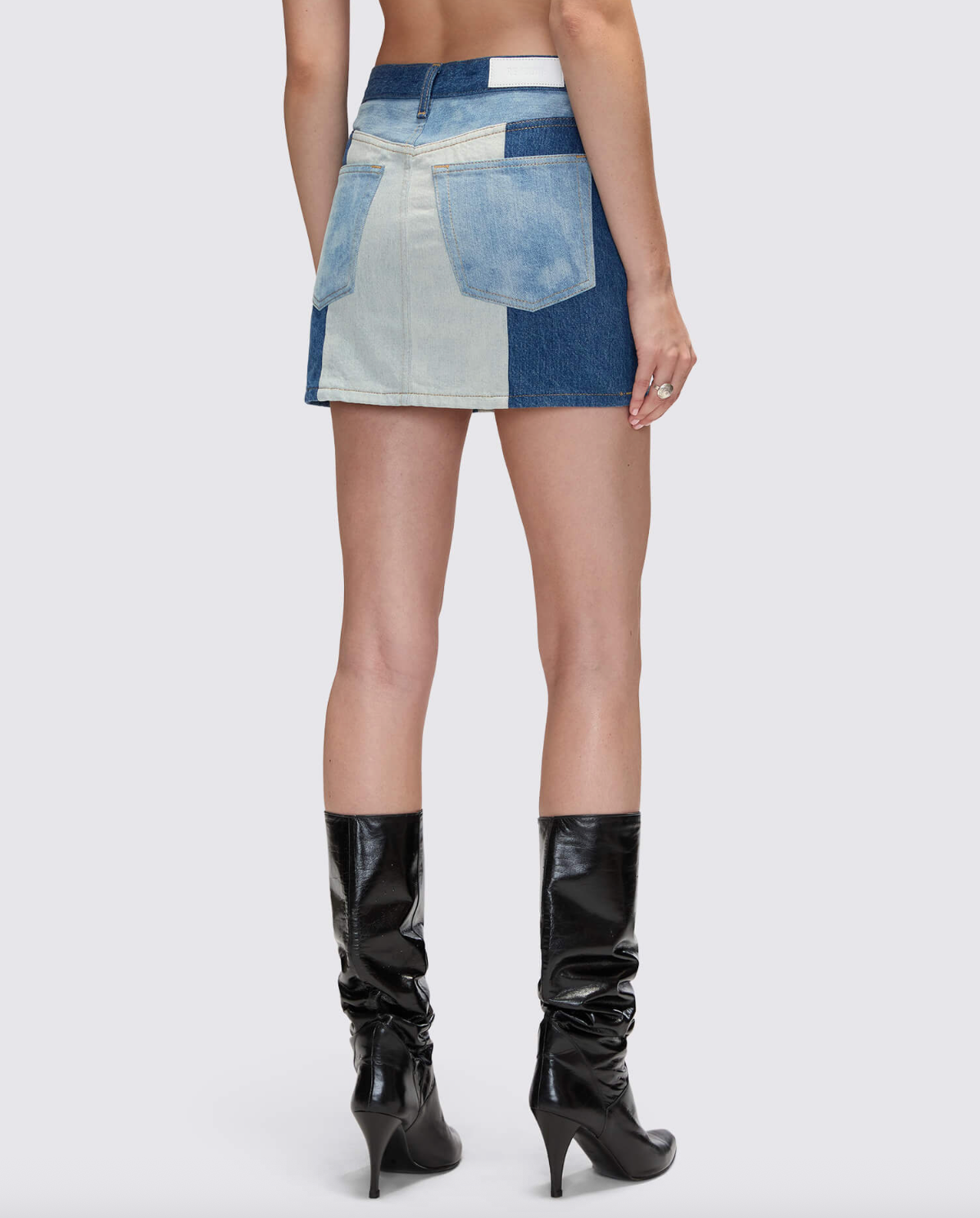 The Classic Mini Denim Skirt channels a cool, vintage attitude with a modern edge. Crafted from 100% cotton, it’s designed from ’60s-inspired denim and pieced together in multi washes for a unique, reworked finish. The result is an effortless statement piece with authentic character.
