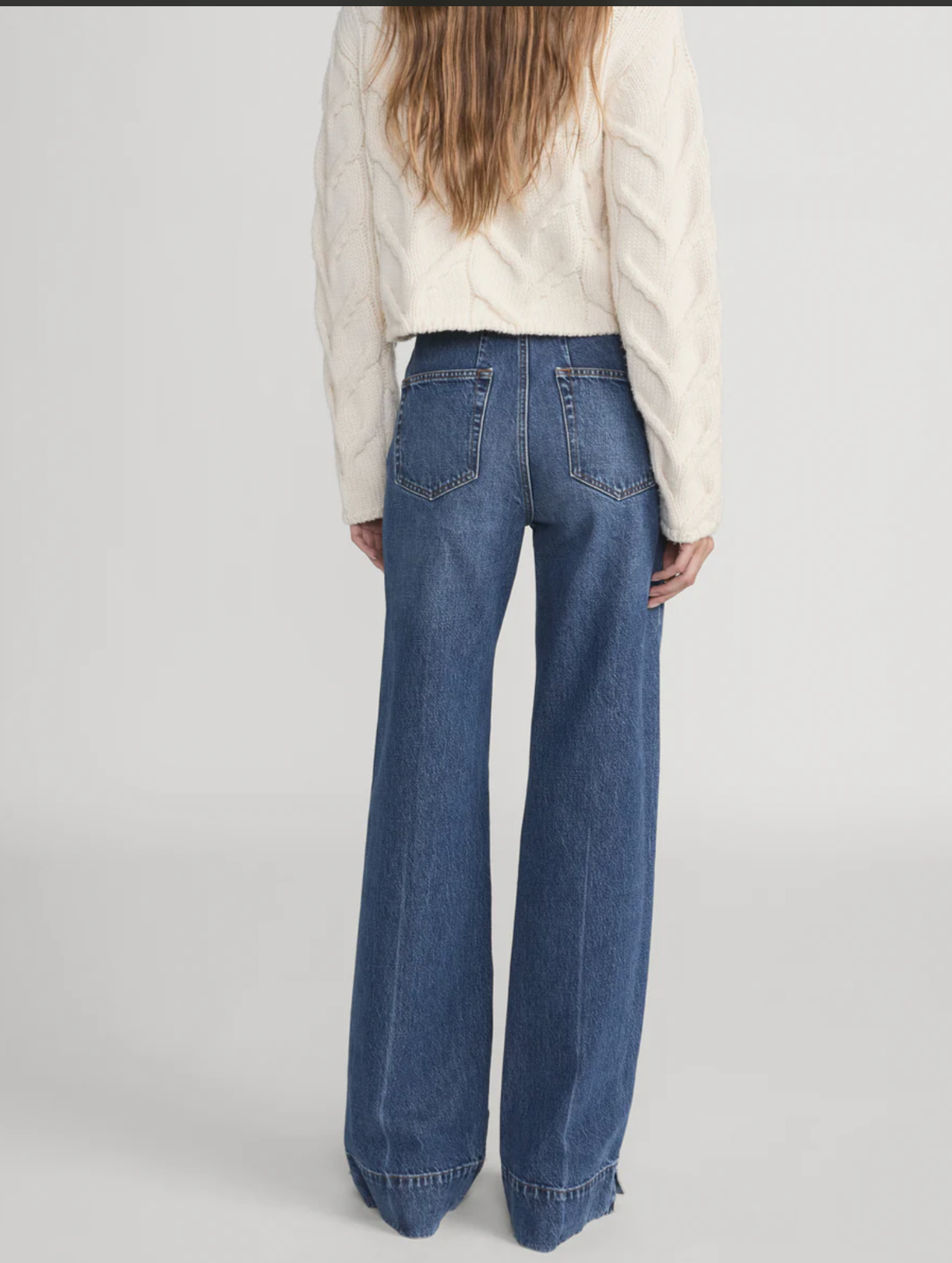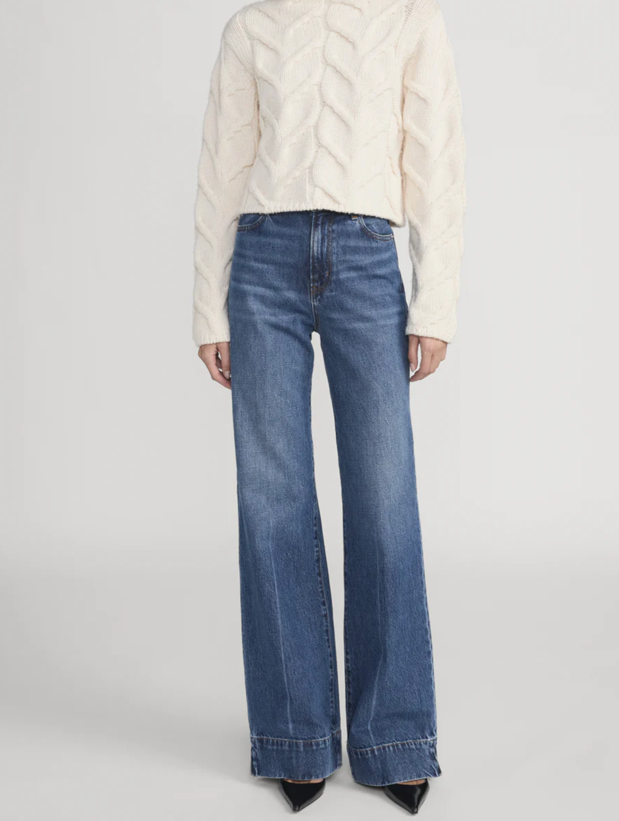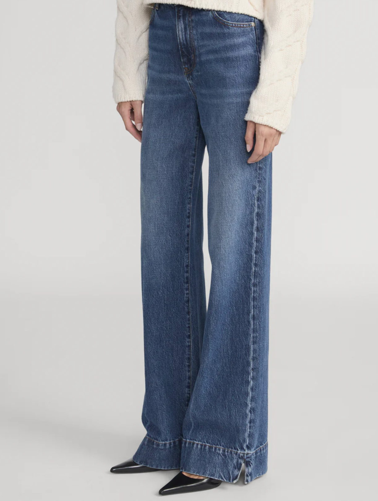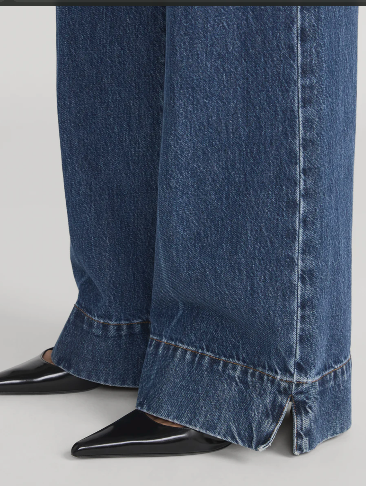 Based on The Streamline fit, this jean is designed to lengthen and sculpt with an ultra-high-rise waist and elongated inseam that creates a striking, leggy silhouette. The slim-wide leg opens into a soft flare, finished with a deep hem and subtle side slit for modern edge. Crafted from luxury rigid denim, the 100% regenerative cotton breaks in over time to conform perfectly to your body—delivering a personalized fit with timeless appeal.