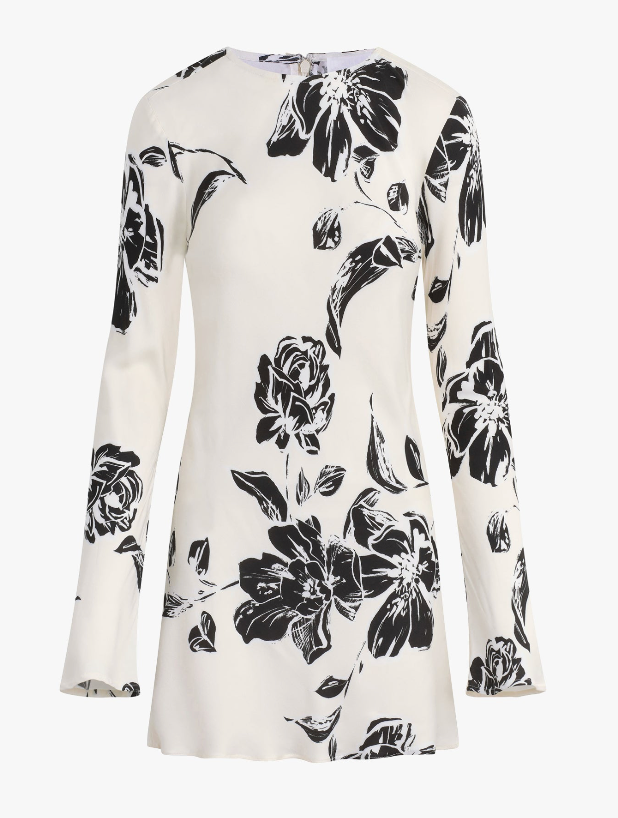 The Truly Madly Mini Dress is a timeless column mini crafted from silky EcoVero™ viscose sateen for a flattering, fluid drape. Designed with a bias-cut silhouette and long bell sleeves, this women’s mini dress delivers effortless elegance for both day and night styling.