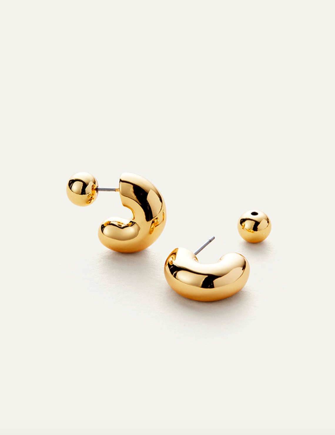 These striking hoops combine bold design with sophisticated details. The tubular, chubby shape with rounded ends gives a contemporary twist on the classic hoop, while the custom JB ball backing adds an exclusive touch. Finished in high-polish gold, these earrings are the perfect blend of modern edge and timeless style, ideal for everyday wear or special occasions.