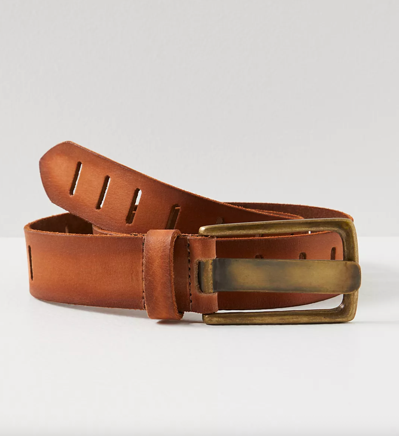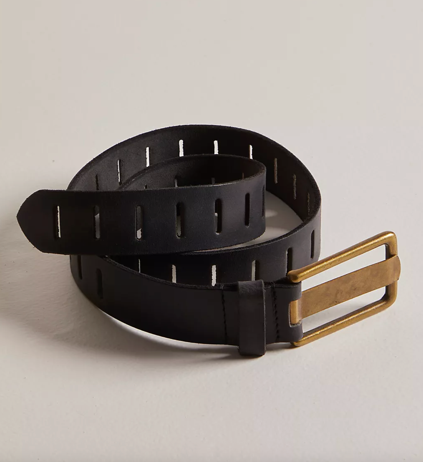 A timeless accessory with a modern edge. Crafted from smooth leather, this versatile belt features thin slot detailing and an adjustable rectangular buckle for the perfect fit. The medium width makes it ideal for pairing with jeans or cinching your favorite blazer.